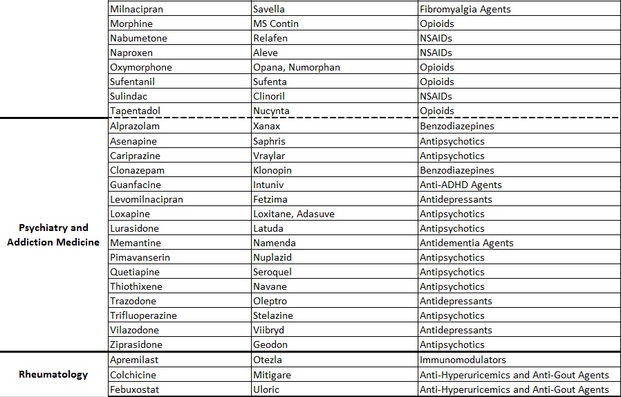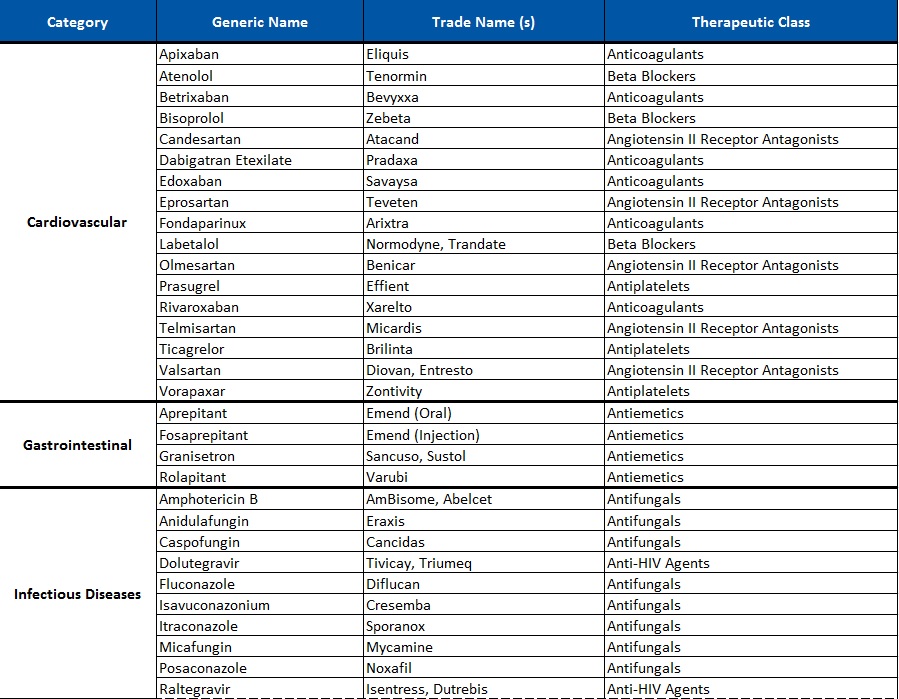 Medications Covered by Drug-Drug Interaction Guidelines